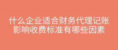 对当今大多数公司而言,采用代理记账方式是一种很好的选择,可以有效地解决公司会计核算中的报税文题。那什么样的公司适合财务代理记账?会计代理记账收费标准的影响因素是什么?今天 大有企服 小编就来和大家一起来了解一下吧。(推荐阅读: 中小企业为什么要找财务公司代理注册和记账? ) 哪些公司适合财务代理记账? 是否选择代理记账方式取决于公司是否具备专